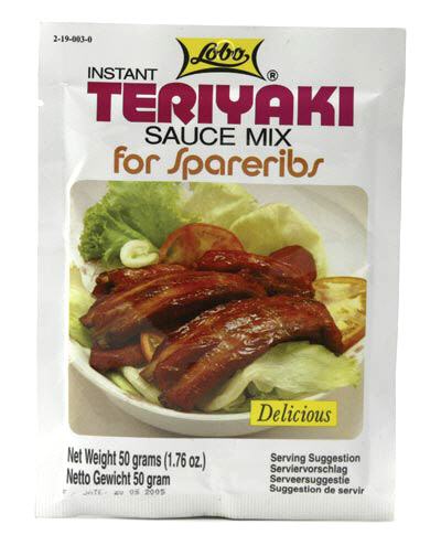 Hier finden Sie Teriyaki Spareribs Marinade Mix, Marinade Mix-Soße für "TERIYAKI-SPARERIBS" Inhalt: 400g von Lobo Brand, Hergestellt in thailand