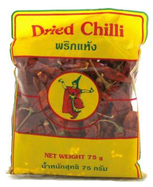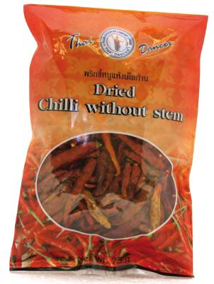 Dried Chilli without stem, Chilli sehr Scharf getrocknet, Inhalt: 75 g Thai dancer Brand Hergestellt in Thailand, Thai Klein Chili getrocknet ...