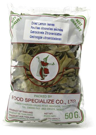Zitronen Blätter getrocknet, hier befindet sich Thai Zitronen Blätter getrocknet, verpackt und Hergestellt in Thailand, als Thai Gewürz für Thai Küche